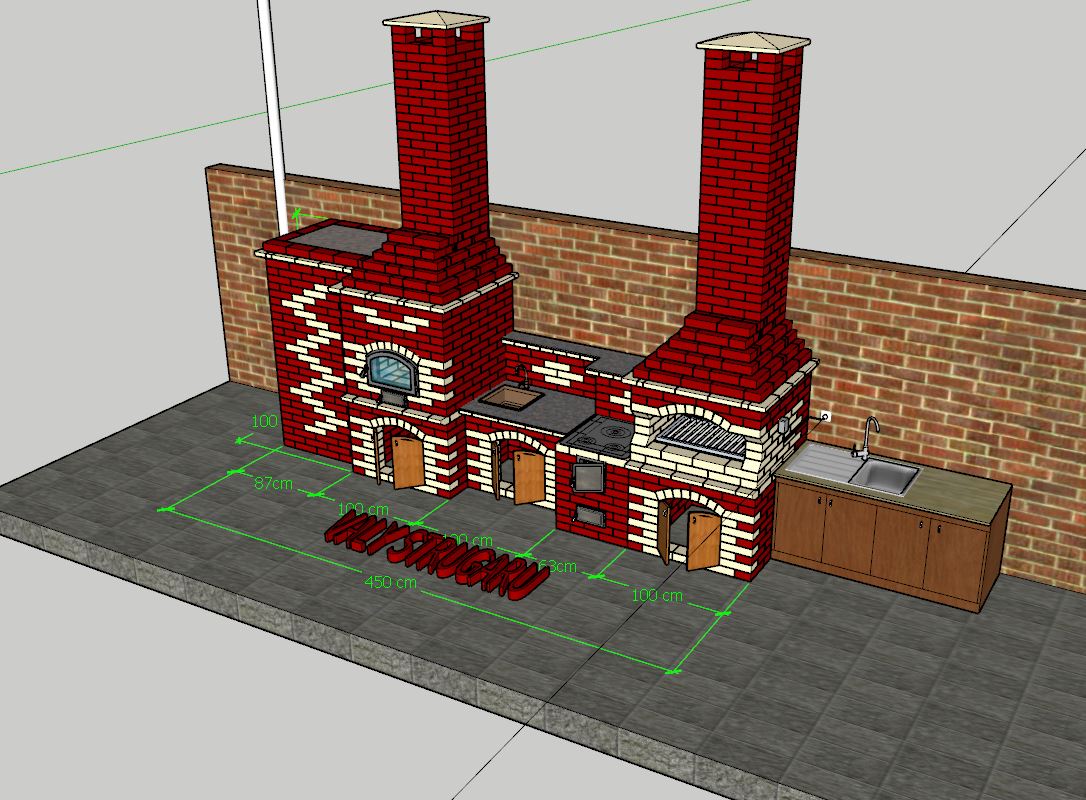 Compus din grătar ,plită țărănească, cuptor pe lemne , afumătoare plat de lucru cu chiuvetă si spați de depozitare .